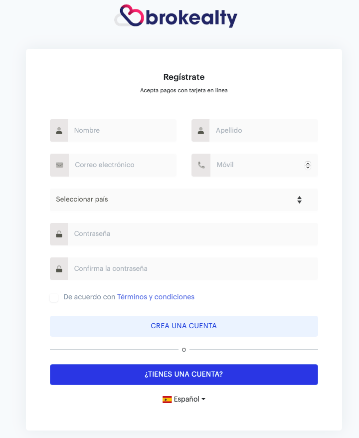 Una vez dentro, aparecerá el siguiente formulario en el cual debe registrarse como usuarios de Brokealty.